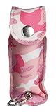- Pink camo pocket case with key ring and a 0.54-ounce self-defense pepper spray canister